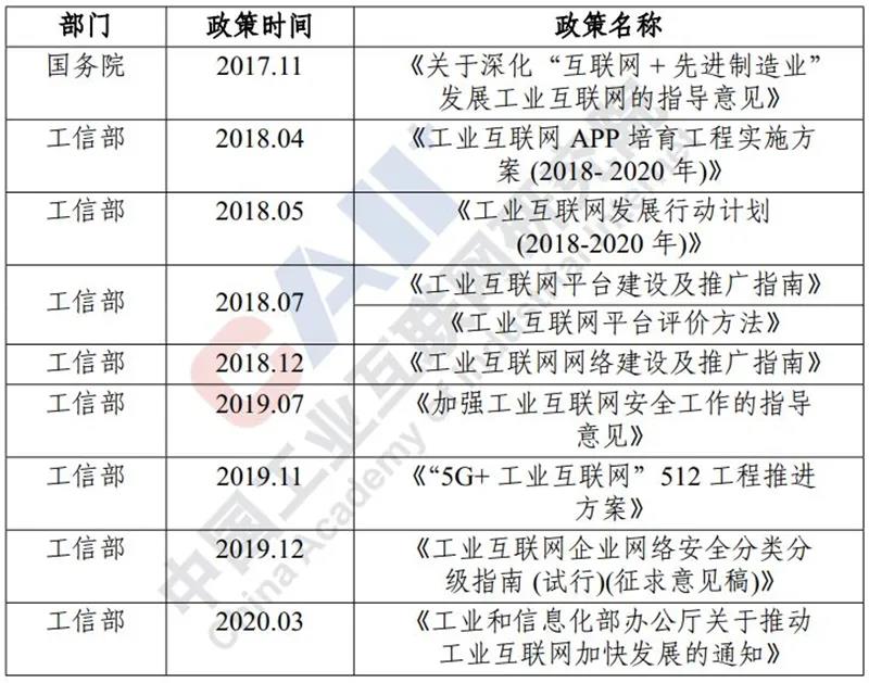 2018 年 5 月,工信部發布《工業互聯網發展行動計劃( 20182020 年)》,該行動計劃以供給側結構性改革為主線,以全面支撐制造強國和網絡強國建設為目標,從網絡、標識解析、平臺、 安全等方面突破核心技術, 促進行業應用,形成有力支撐先進制造業發展的工業互聯網體系,細化了工業互聯網起步階段的發展目標和重點任務。2020 年 2 月,中共中央政治局會議強調,推動生物醫藥、醫療設備、 5G網絡、工業互聯網等加快發展。