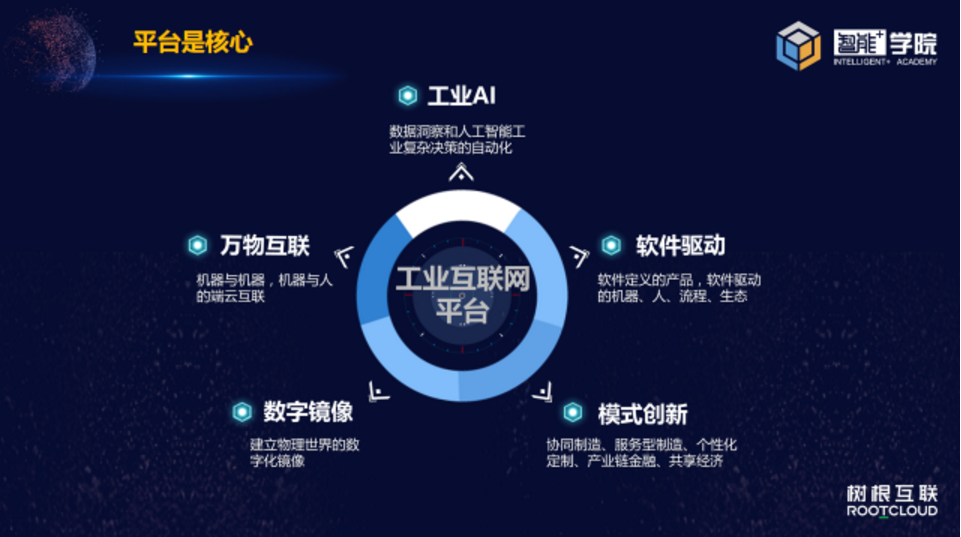 網絡化更多是說新的連接,就是把機器、設備、人、物全部要連接網絡上,同時會有所有這些對象的數字化,就是我們的數字雙胞胎。最后一點,當所有這些物理對象和人數字化以后它就可以把新一代的技術能夠完全使用起來,也可以把互聯網支撐的商業模式能夠使用起來實現一個自動化運營。而整個轉變的核心是工業互聯網平臺。