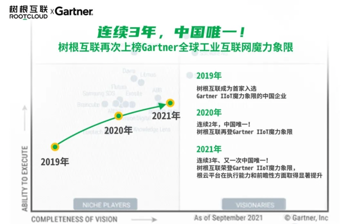 自2016年成立至今,短短5年內(nèi),樹根科技股份有限公司(以下簡稱“樹根科技”)發(fā)展迅猛。2016年12月,樹根科技發(fā)布1.0版本的工業(yè)互聯(lián)網(wǎng)平臺——ROOTCLOUD(根云);2018年,樹根科技落戶廣州;2019年至2021年,樹根科技連續(xù)3年入選國際咨詢公司Gartner《全球工業(yè)互聯(lián)網(wǎng)平臺魔力象限報告》,是目前唯一一家入選的中國工業(yè)互聯(lián)網(wǎng)平臺公司,2019年至2020年,根云連續(xù)兩年入選工信部的跨行業(yè)跨領域工業(yè)互聯(lián)網(wǎng)平臺(以下簡稱“雙跨平臺”),是目前全國15大雙跨平臺之一;2020年12月,樹根科技完成C輪8.6億元的融資,估值超11億美元,成為中國工業(yè)互聯(lián)網(wǎng)獨角獸企業(yè)。
