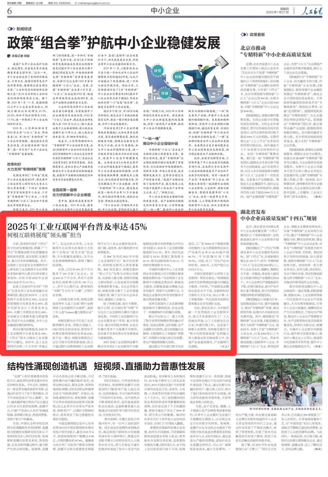 人民郵電報(bào)刊發(fā)文章《2025年工業(yè)互聯(lián)網(wǎng)平臺(tái)普及率達(dá)45% 樹根科技展現(xiàn)“領(lǐng)頭雁”擔(dān)當(dāng)》,認(rèn)可樹根科技在工業(yè)互聯(lián)發(fā)展領(lǐng)域的突出貢獻(xiàn)。以下內(nèi)容摘自原文: