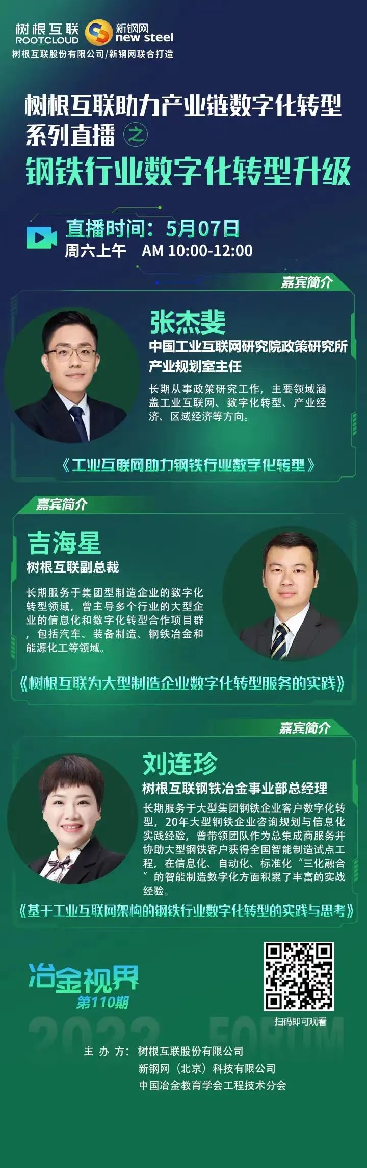 2022年5月7日,在廣州市“鏈長制”辦公室(廣州市工業(yè)和信息化局)的指導(dǎo)下,樹根科技作為廣州市“軟件和信創(chuàng)”產(chǎn)業(yè)鏈“鏈主”企業(yè),聯(lián)合新鋼網(wǎng)舉辦樹根科技助力產(chǎn)業(yè)鏈數(shù)字化轉(zhuǎn)型系列直播之“鋼鐵行業(yè)數(shù)字化轉(zhuǎn)型升級”活動,特邀數(shù)字化轉(zhuǎn)型專家們帶來鋼鐵行業(yè)的專業(yè)分享,歡迎各位關(guān)注參與本次線上直播活動。