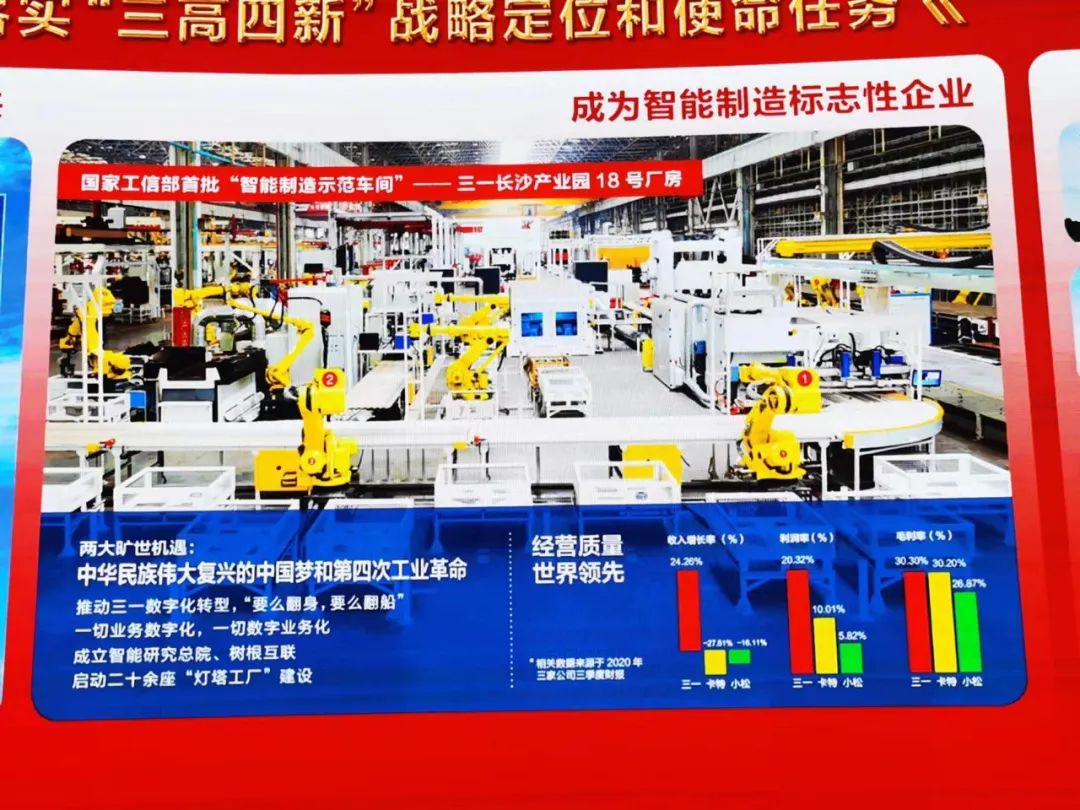 圖注:三一重工展示墻2021年7月,《人民日報》海外版報道了三一重工的18號工廠。其中提及:“一輛泵車的制造周期從28天縮減到17天,制造周期縮短了近40%。”