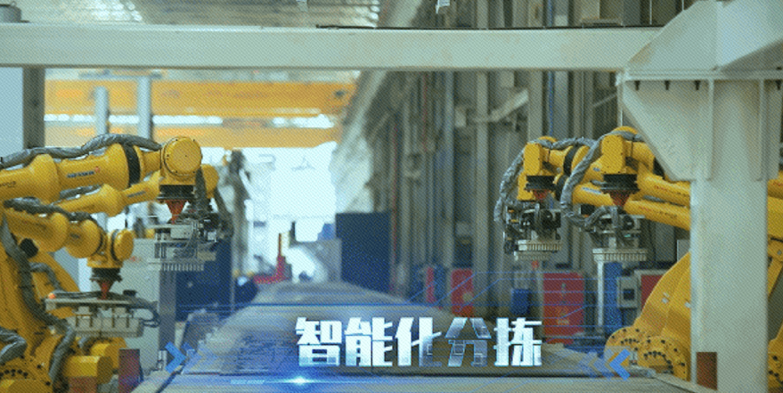 切割完成后的鋼板,再由八個機械手臂進行分揀、抓取到不同的分裝框中,而自動運輸機器人已經在一旁嚴陣以待,它們把一部分鋼板送去總裝線,另一部分則送去拋光生產線。所以,三一重工可以實現混線生產,不同規格和型號的泵車可以進行批量化生產。