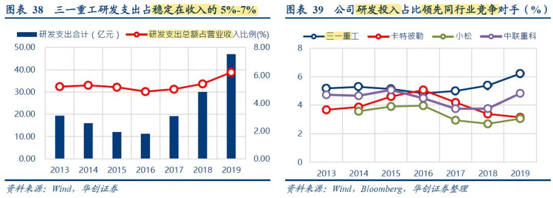 從全球來看,中國企業主要落后于兩個全球巨頭——美企卡特彼勒以及日企小松。不過,我們也發現三一重工的研發投入在業內優勢也愈加明顯,假以時日,未來可期。