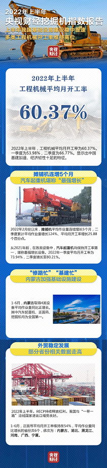 2022年上半年工程機械平均月開工率為60.37%,二季度為66.77%,明顯高于一季度53.98%。