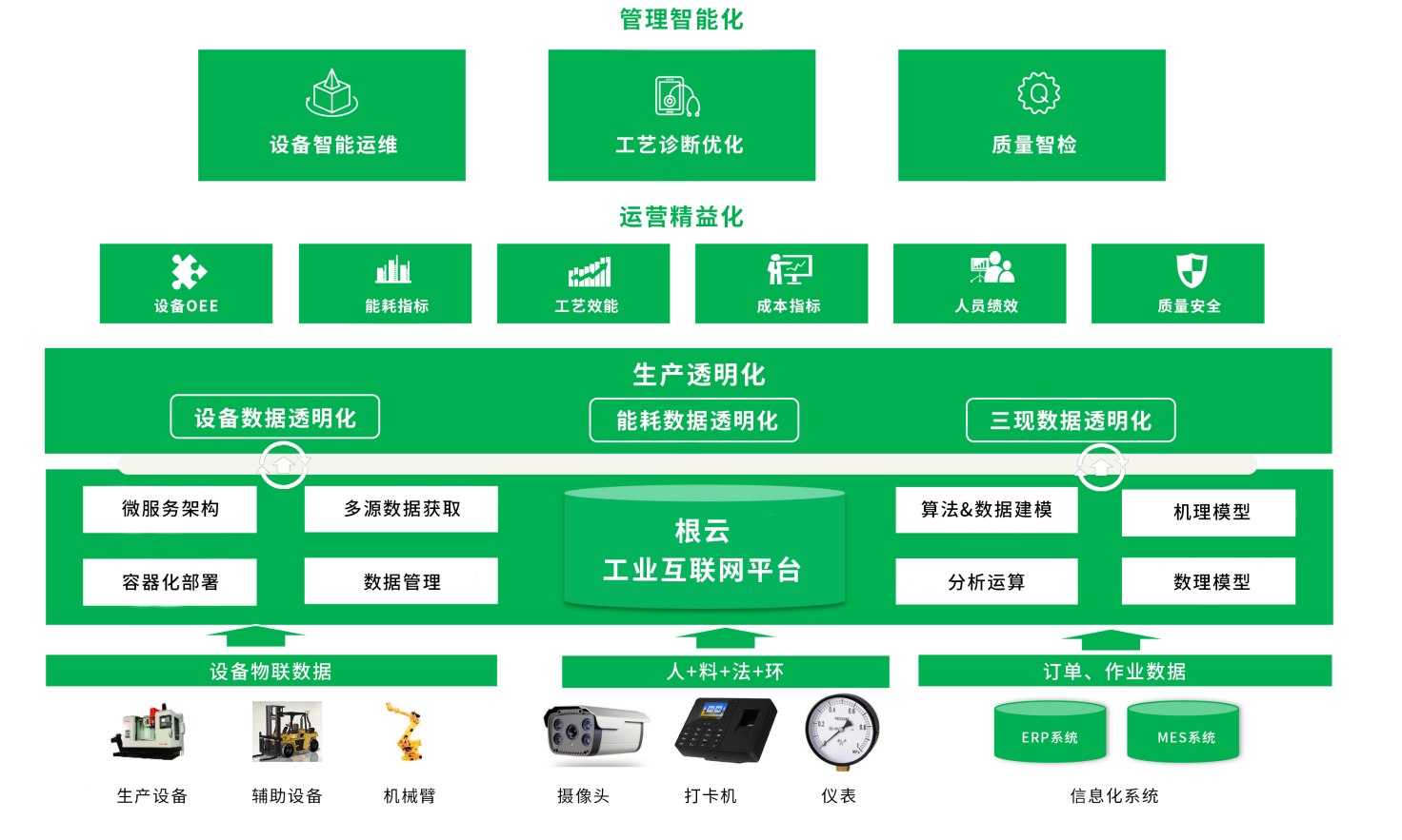 結合對工業轉型的深入理解與實踐,樹根科技提出裝備制造廠內數智化轉型的四條路徑,通過“產線數字化-生產透明化-運營精益化-管理智能化”搭建基于數據閉環驅動的卓越制造體系,打通全價值鏈,實現柔性化生產以及精益化管理和決策。