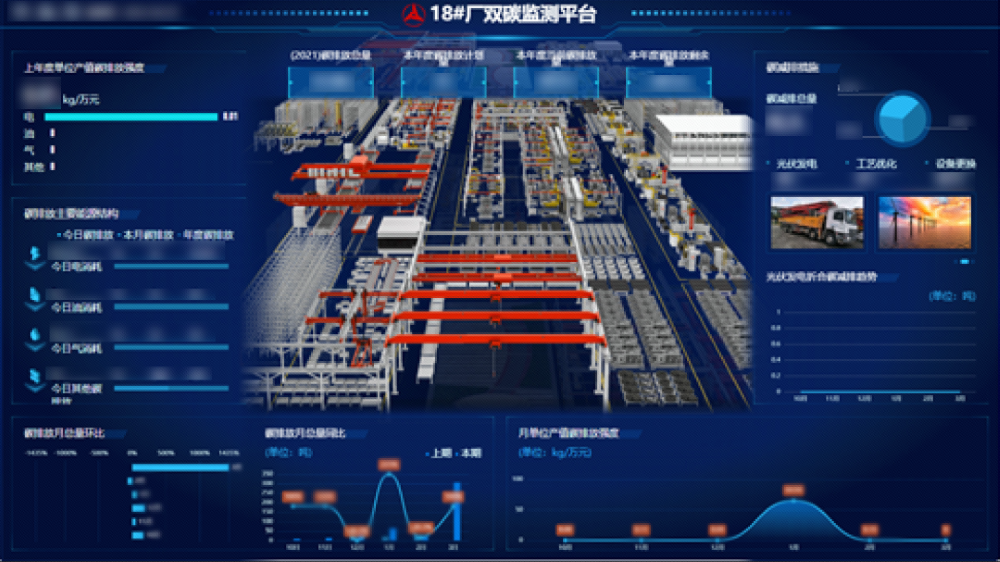 對工廠日、月、年的碳排放情況進行展示,展示綠能使用情況,自動生成碳排放報告