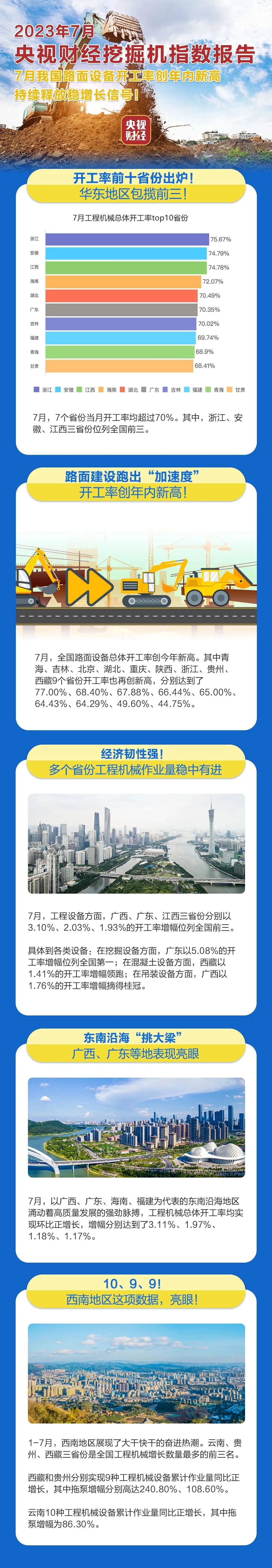 7月,以廣西、廣東、海南、福建為代表的東南沿海地區(qū)涌動著高質(zhì)量發(fā)展的強勁脈搏,工程機械總體開工率均實現(xiàn)環(huán)比正增長,增幅分別達到3.11%、1.97%、1.18%、1.17%。