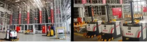智能化立體倉庫和物流運輸系統(tǒng)實現(xiàn)泵車、拖泵、車載泵裝配線及部裝線所需物料的暫存、揀選、配盤功能,并與AGV配套實現(xiàn)工位物料自動配送至各個工位。