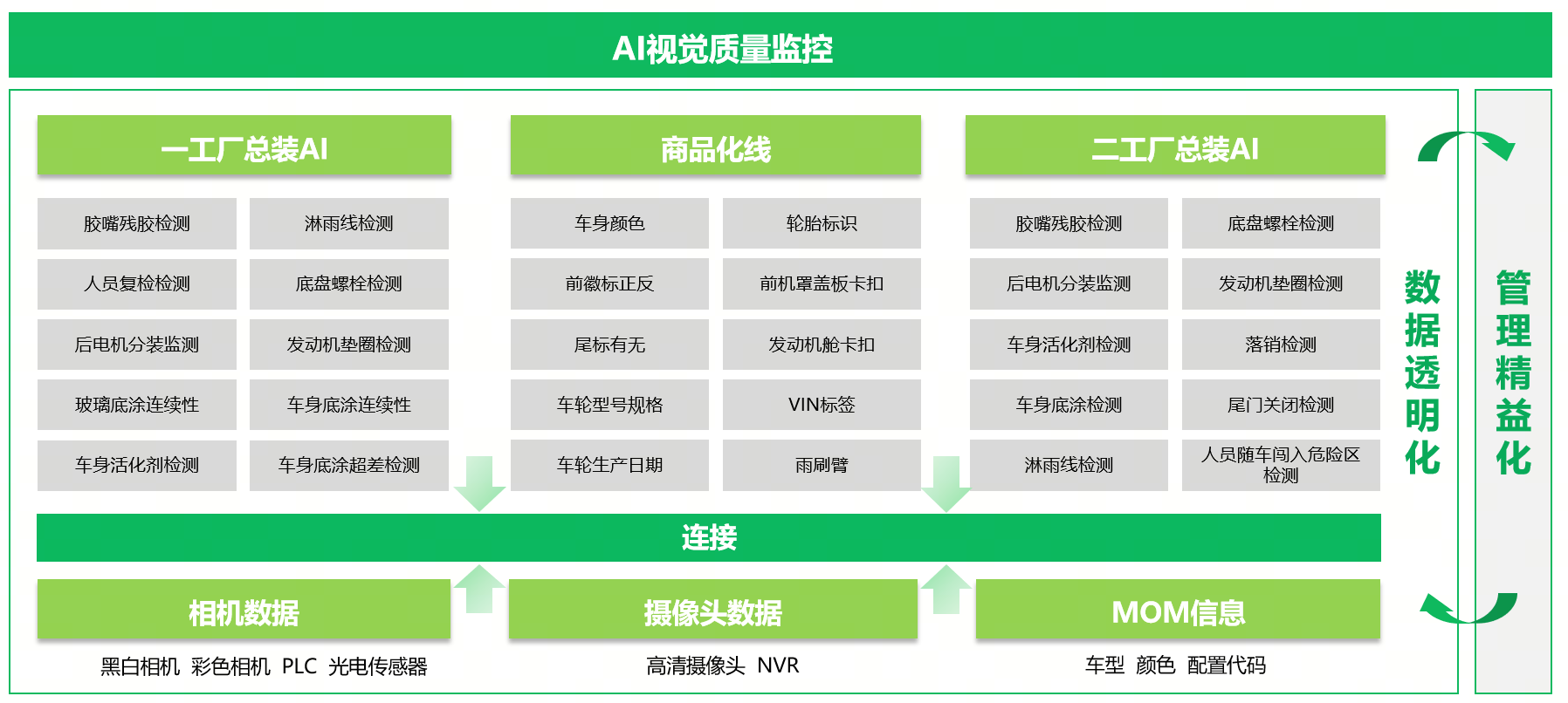 主要提供AI視覺檢測功能,包括:輪胎型號識別、整車顏色識別、徽標(biāo)識別、標(biāo)簽識別等。解決方案包括視覺模組、管理軟件、算法軟件等內(nèi)容。